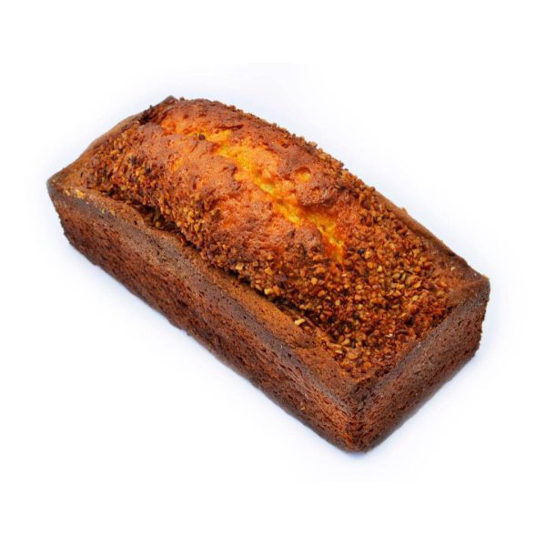 Panque de vainilla hecho con harina blanca, sal, azúcar, huevo, mantequilla, extracto de vainilla, leche. Queda esponjoso y suave, contiene nueces arriba.